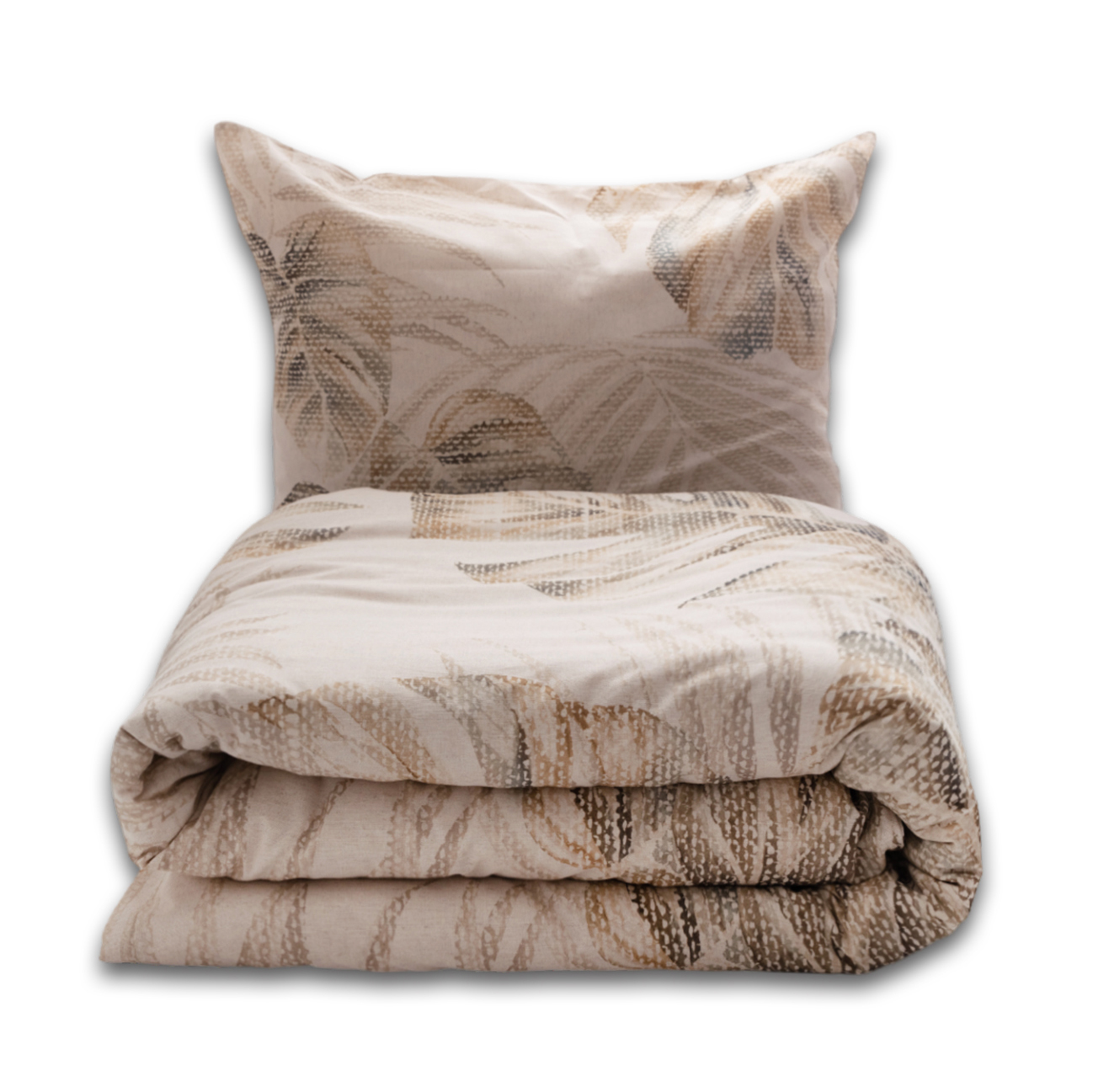Matex Pościel lniana LINEN drukowana 220x200+30, 2 x 70x80+20. motyw: Duże Liście to pościel stworzona z myślą o osobach, które cenią naturalność, spokój oraz ponadczasowe, minimalistyczne wzornictwo. Doskonale wpisuje się w aranżacje inspirowane stylem boho oraz skandynawskim, gdzie liczy się harmonia, prostota i bliskość natury. Pościel Linen z naturalnych włókien nadaje sypialni lekkości i przytulnego charakteru, jednocześnie podkreślając jej estetyczny, uporządkowany wygląd. Modne, stonowane kolory sprawiają, że pościel stanowi idealne tło dla minimalistycznych dodatków i naturalnych materiałów.