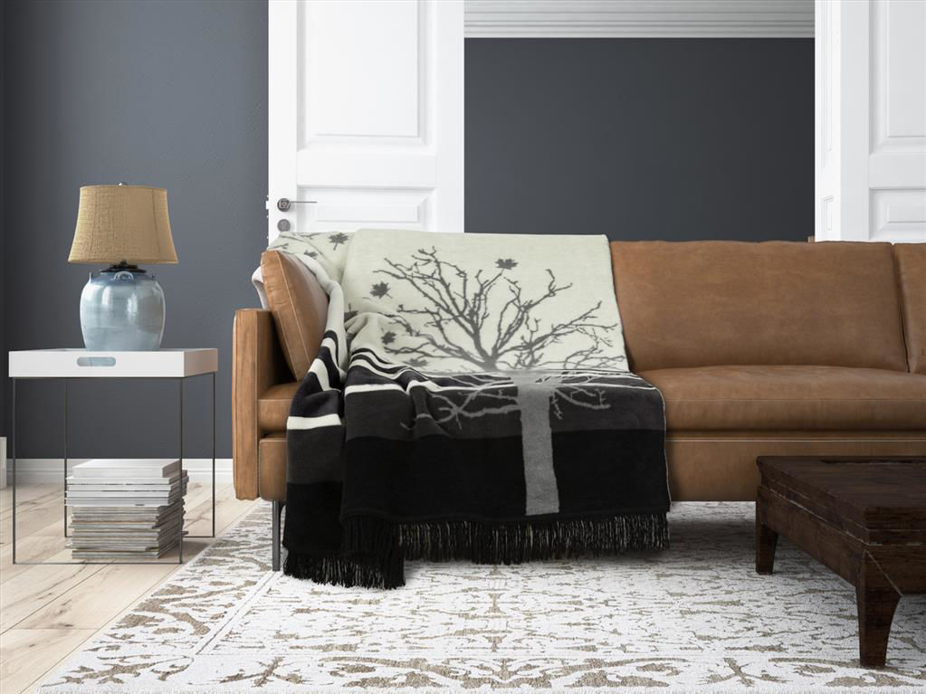 Matex Koc bawełniany MORENO, z frędzlami, 150x200, wzór drzewo